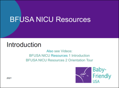 The NICU Resources document is supported by related instructional materials to help users become familiar with and make use of these resources to implement improved practices. This includes three short instructional videos and two slide presentations, which we recommend you watch in the following order:
