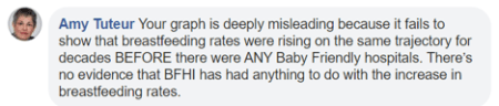 We posted a link to our article on BFUSA’s Facebook page after publishing it on our website. Among the many, many positive comments we received after our publication, there were three negative responses to our Facebook post, two of which were made by familiar BFHI detractors. We would like to respond to these comments directly.