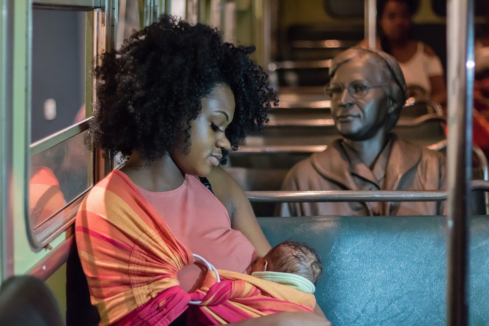 But Ka’Neisha (pictured here next to the statue of Rosa Parks at the Civil Rights Museum in Memphis) says, “I always knew I would breastfeed. I knew it was natural and formula would be expensive.”